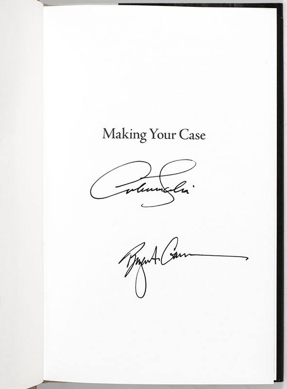 Early printing of Scalia's work on effective legal persuasion. Octavo, original cloth. Signed by Antonin Scalia and Bryan A. Garner on the half-title page. Fine in a fine dust jacket.