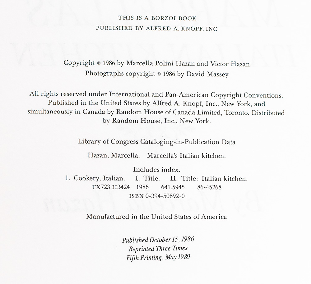 "The name Marcella Hazan is synonymous with great Italian cooking. The mere reading of her recipes can stimulate my appetite. Whether they are of a traditional nature or recent interventions, they are all lucidly written and well within the range of the amateur or professional" (Craig Claiborne).