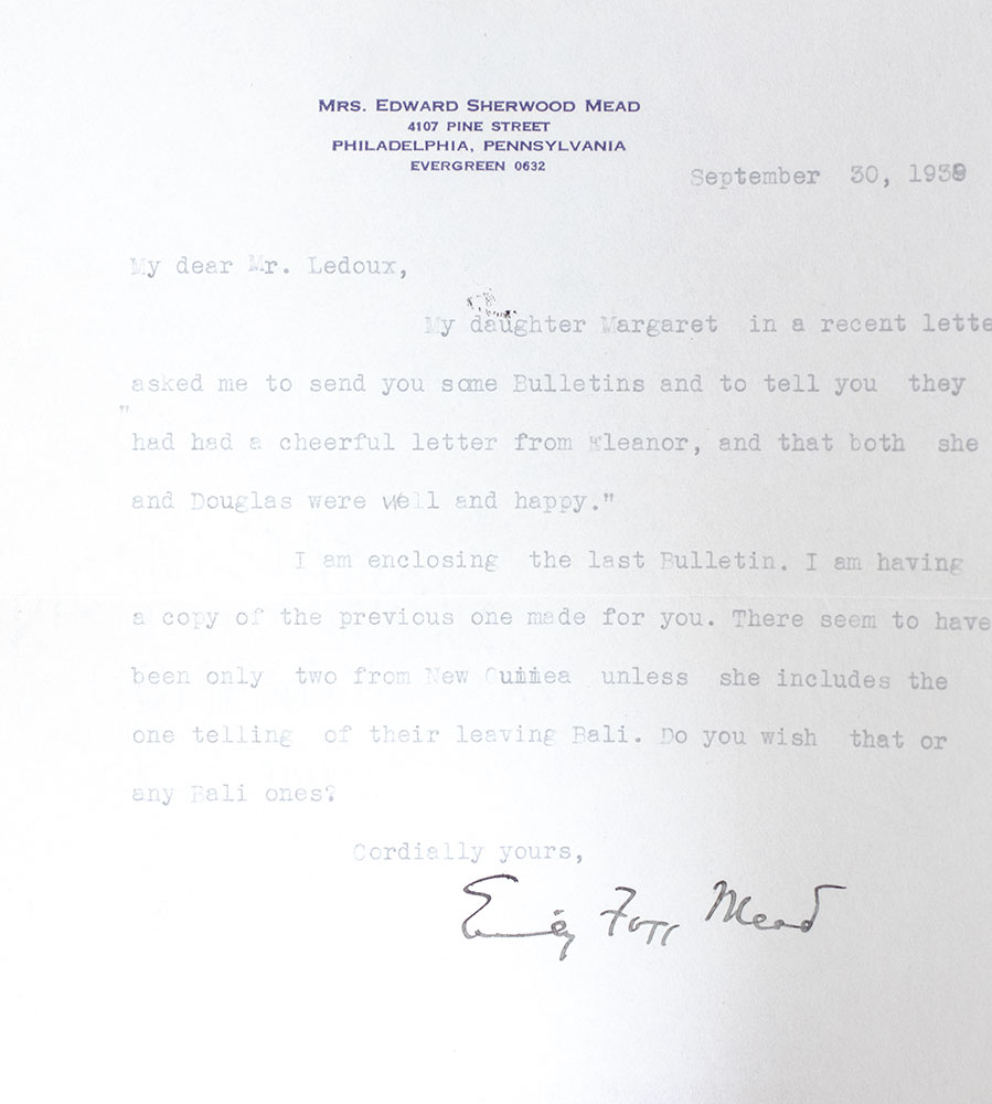 Rare Archive of autograph letters and typed documents signed by Margaret Mead to her Protegee Louis-Pierre Ledoux