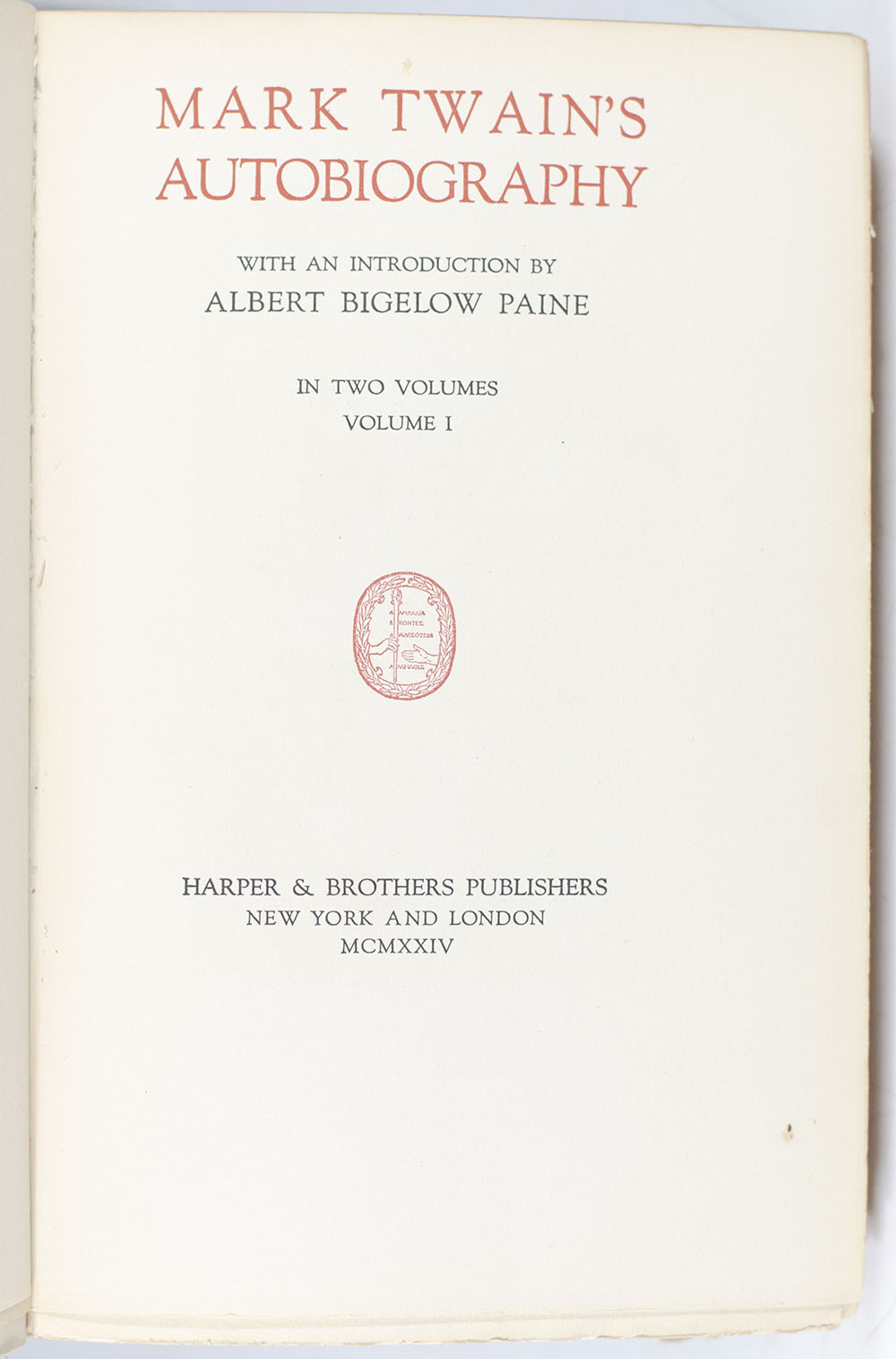 "In this autobiography I shall keep in mind the fact that I am speaking from the grave": First edition of Mark Twain's Autobiography