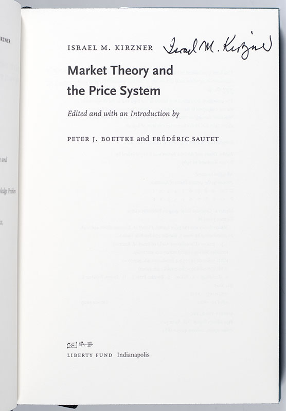 Israel M. Kirzner's Market Theory and the Price System; Signed by Him