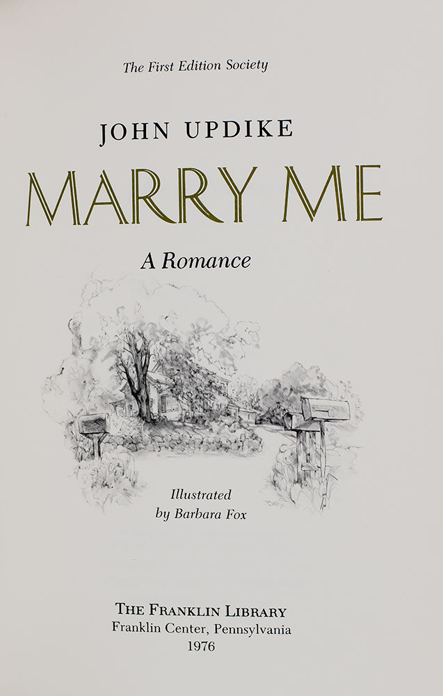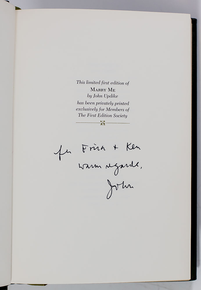 First edition of John Updike's Marry Me; inscribed by him to Erica Jong and her husband Kenneth David Burrows
