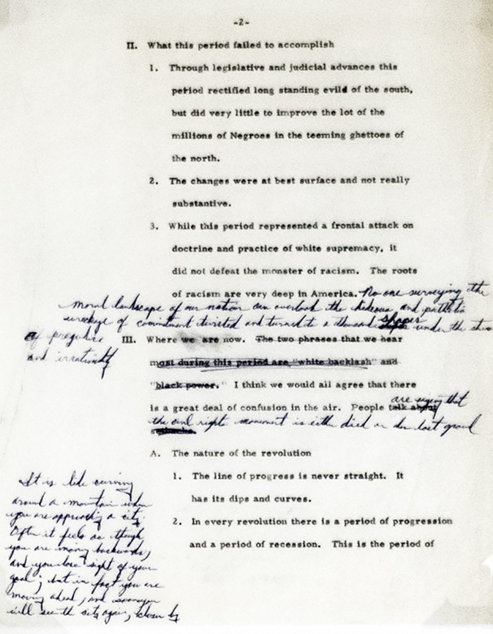 "From whence we have come; where we are now; where do we go from here": Rare Hand-corrected Manuscript Speech of Martin Luther King Jr.