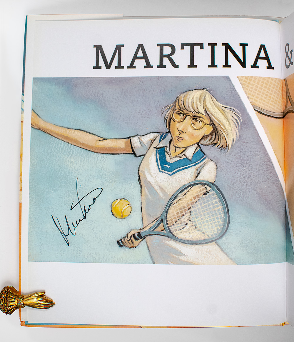 First edition of this fascinating dual biography of tennis greats Chris Evert and Martina Navratilova. Quarto, original illustrated boards, illustrated throughout by Brett Helquist. Boldly signed by both Martina Navratilova and Chris Evert on the title page. Fine in a fine dust jacket. Uncommon signed of these tennis legends.