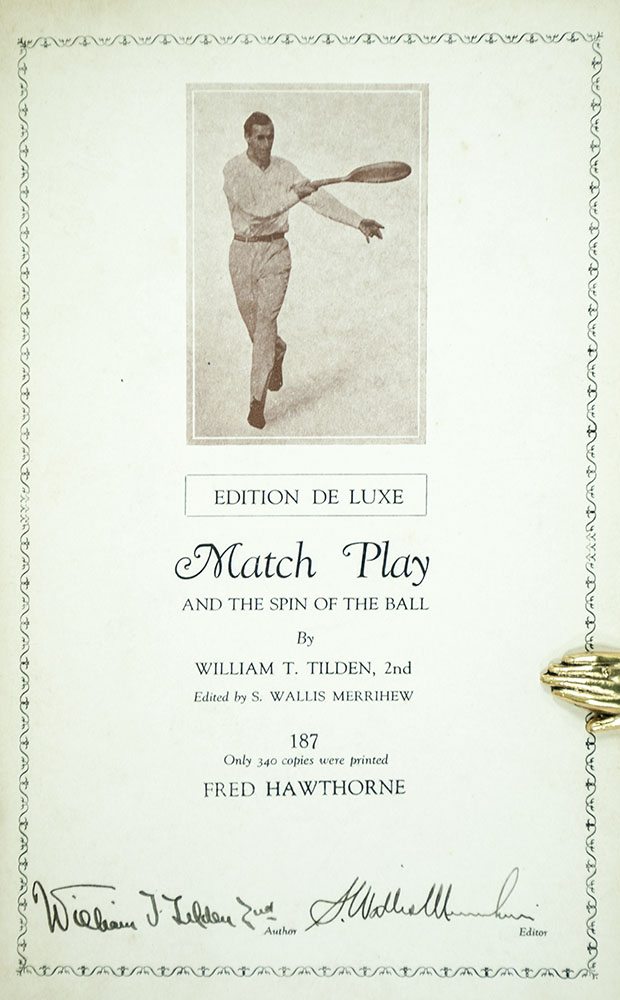 Limited deluxe edition. One of 340 numbered copies, signed by both William J. Tilden and the editor S. Wallis Merrihew. In excellent condition with light rubbing to the joints, contemporary inscription to the front free endpaper. Rare.