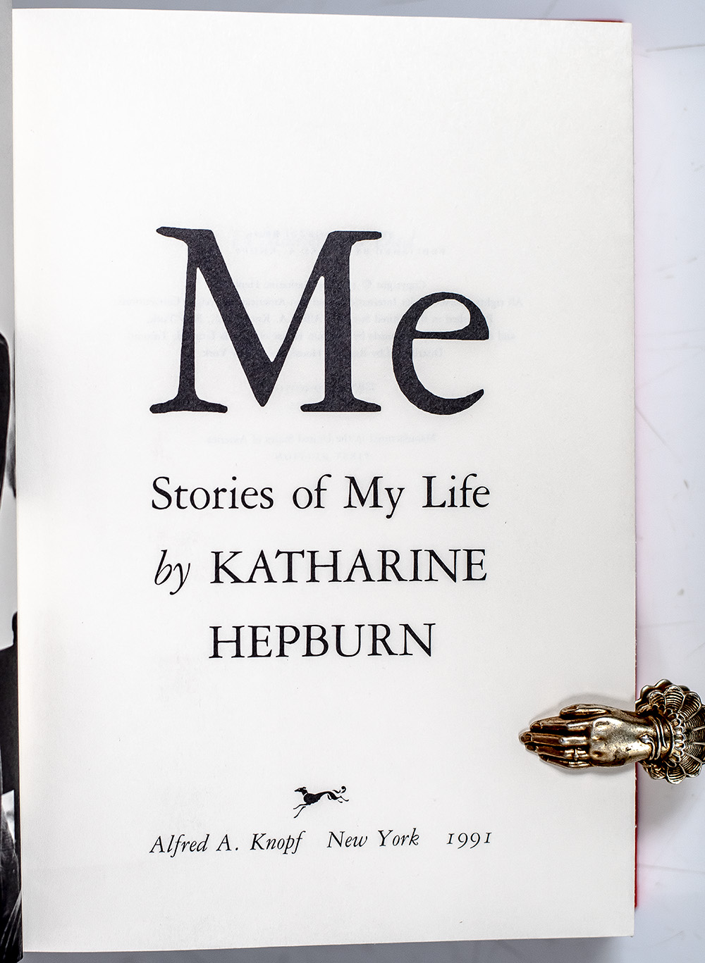"If you always do what interests you, at least one person is pleased": First edition of Me: Stories of My Life; Signed by Katharine Hepburn and Signed Three Times by Jacket illustrator Chip Kidd