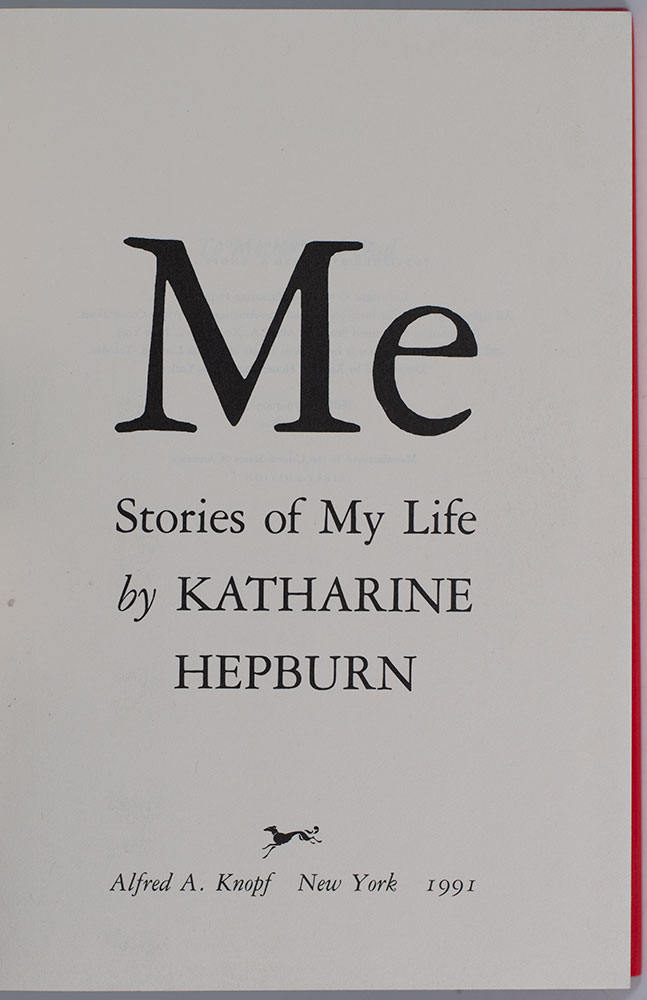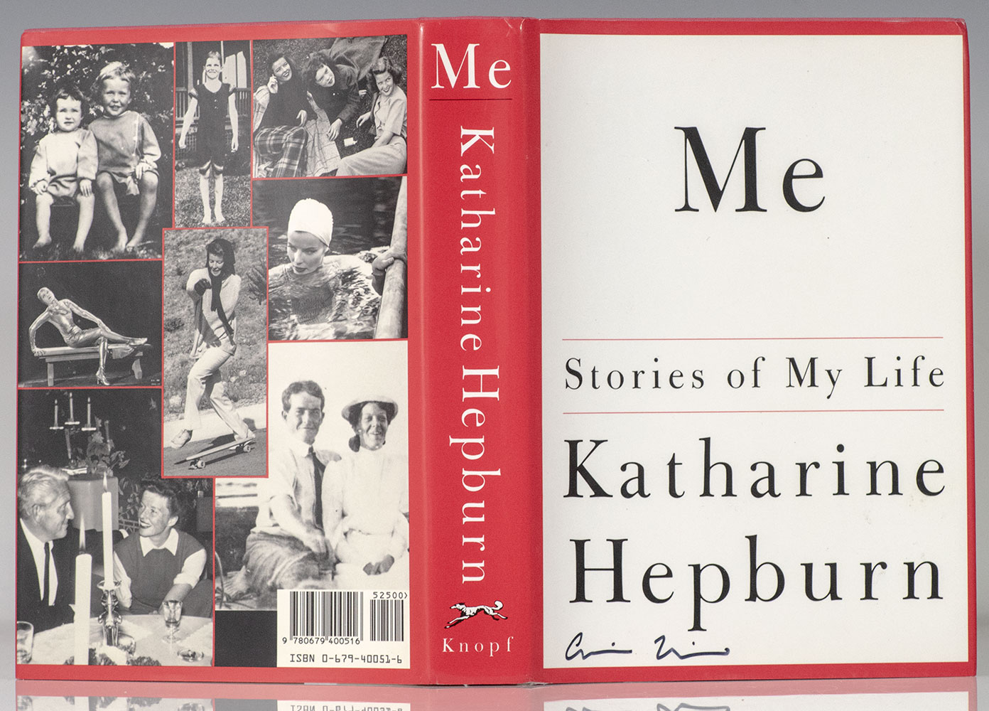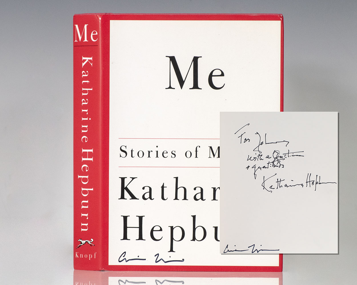 "If you always do what interests you, at least one person is pleased": First edition of Me: Stories of My Life; inscribed by Katharine Hepburn to Johnny Carson and Signed Three Times by Jacket illustrator Chip Kidd