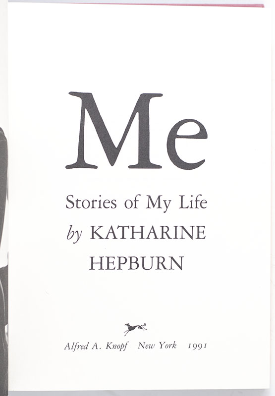 "If you always do what interests you, at least one person is pleased": First edition of Me: Stories of My Life; inscribed by Katharine Hepburn and Signed Three Times by Jacket illustrator Chip Kidd