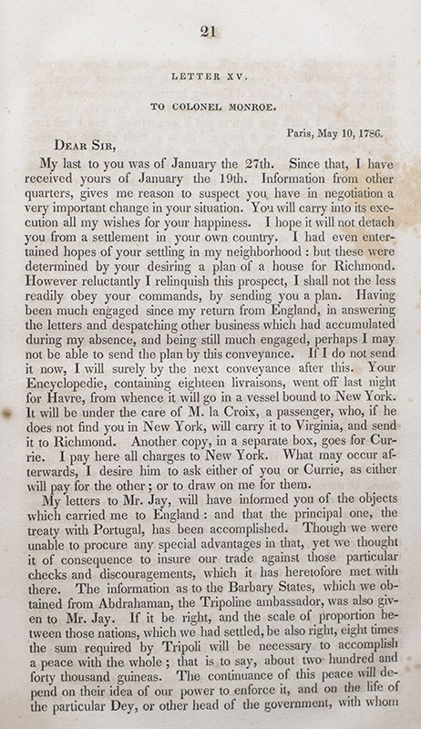 "The most valuable of all talents is that of never using two words when one will do": RARE FIRST EDITION OF THE COLLECTION OF JEFFERSONS WRITINGS