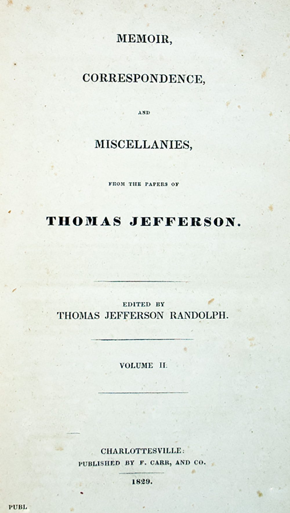 Memoir, Correspondence, and Miscellanies, from the Papers of Thomas Jefferson. Edited by Thomas Jefferson Randolph.