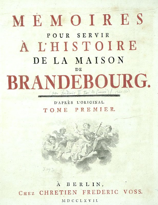 Memoires pour Servir a l'Histoire de la Maison de Brandebourg (Memoirs of the House of Brandenburg).