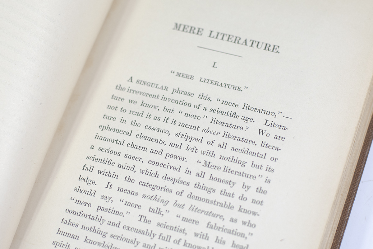 "May this little volume speak clearly, to whomsoever may own it, of a genial love of good books and a deep love of country": First Edition of Woodrow Wilson's Mere Literature; Lengthily Signed by Him