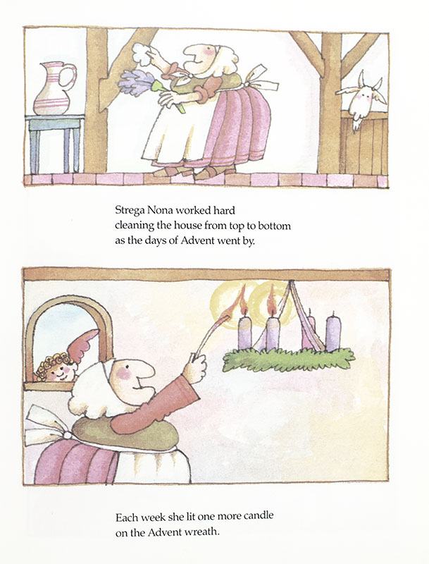 American writer and illustrator Tomie dePaola created more than 260 children's books throughout his career, including his beloved Strega Nona series about a "Grandma Witch" and her helper, Big Anthony. The first book in the series, Strega Nona, was published in 1975 and won a Caldecott Honor in 1976. In the third book in the Strega Nona series, Merry Christmas, Strega Nona, the title character abandons her usual pursuits in order to prepare a Christmas dinner for the entire town.