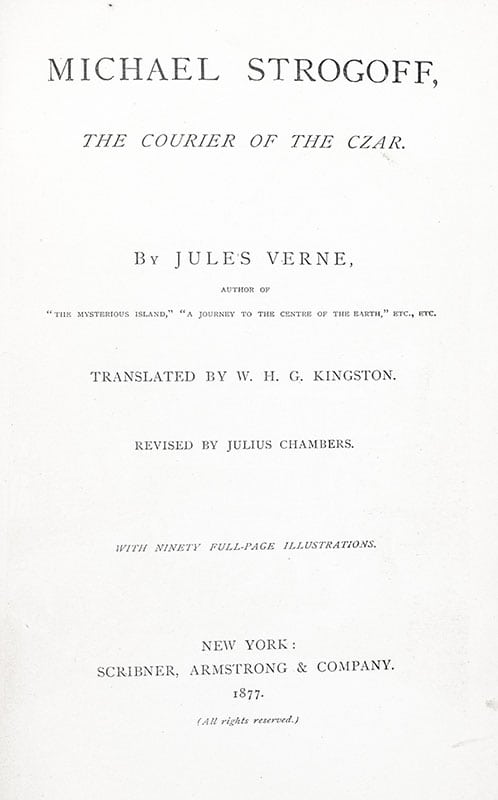 “In the course of time, Michael Strogoff reached a high station in the Empire. But it is not the history of his success, but the history of his trials, which deserves to be related": First Edition of Jules Verne's Michael Strogoff, the Courier of the Czar