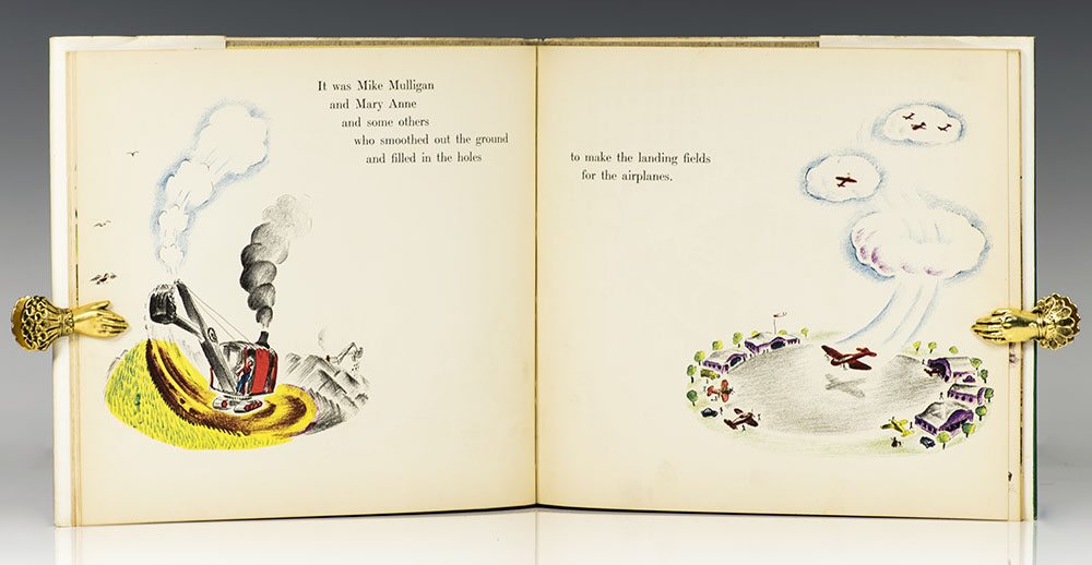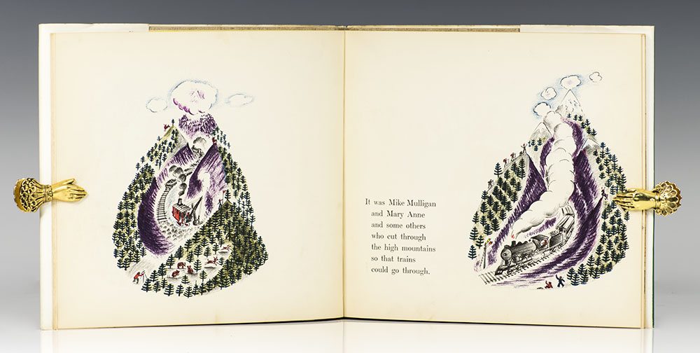First edition, first issue with the date of 1939 on the title page. Oblong quarto, original tan cloth. Signed by the author on the half-title page, "greetings from Virginia Lee Burton." An excellent near fine example in a near fine price-clipped dust jacket. Housed in a custom half morocco clamshell box. Most rare and desirable signed by Virginia Lee Burton.