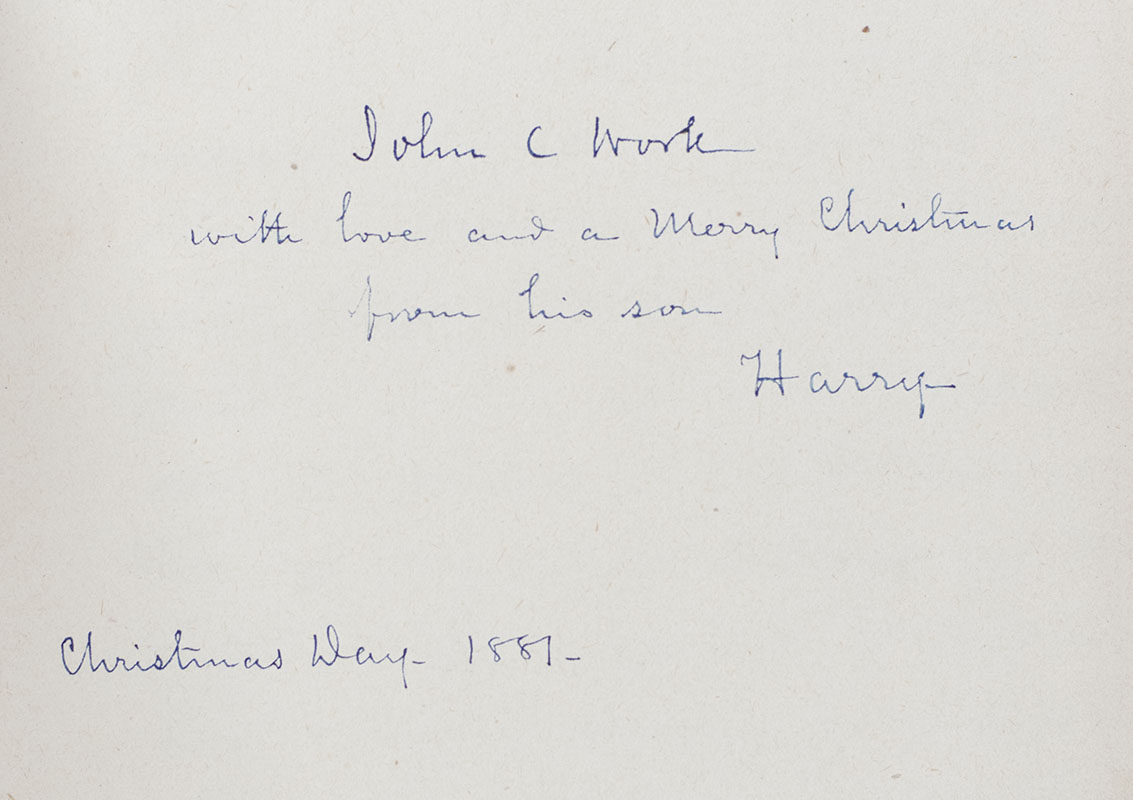From the library of John C. Work with a gift inscription to him from his son to the front free endpaper.
