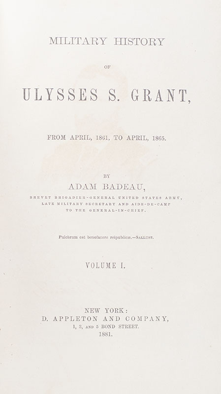 BADEAU, Adam. [Ulysses S. Grant; William Tecumseh Sherman; Philip H. Sheridan].