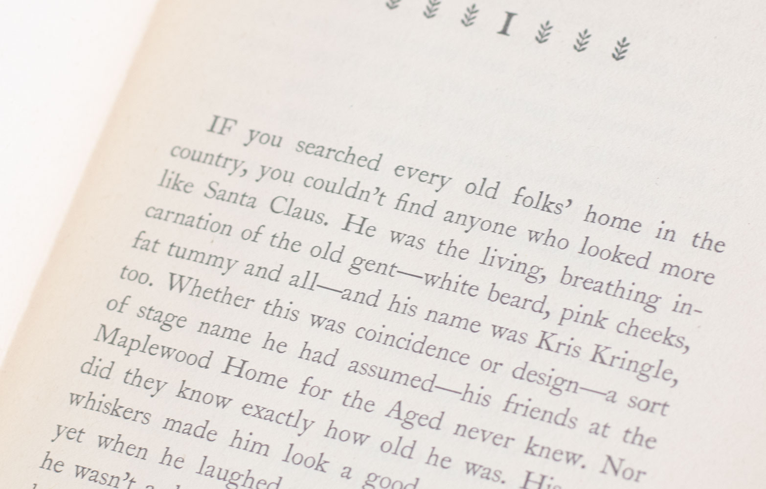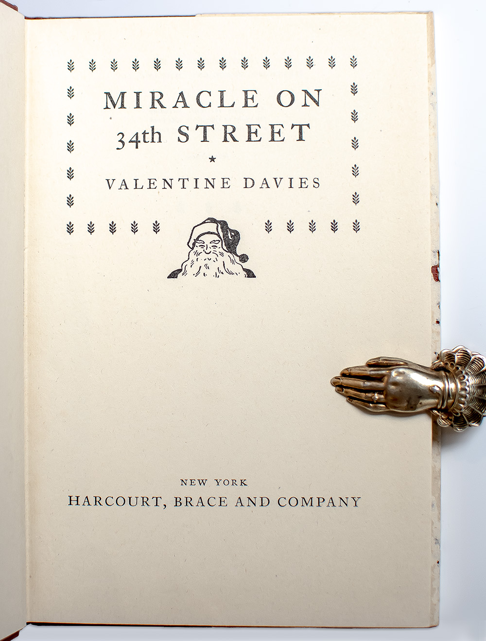 “CAN'T YOU LET YOURSELF BELIEVE IN PEOPLE LIKE KRIS—IN FUN AND JOY AND LOVE AND ALL THE OTHER INTANGIBLES?" FIRST EDITION OF MIRACLE ON 34TH STREET; SIGNED BY VALENTINE DAVIES
