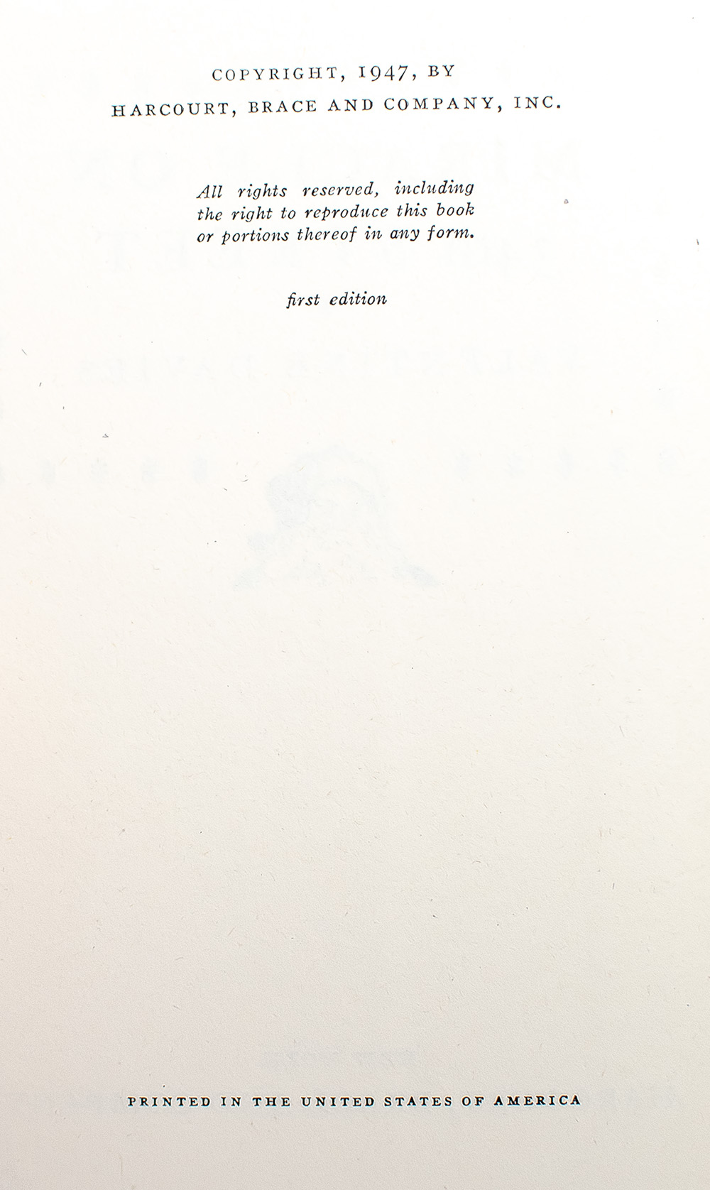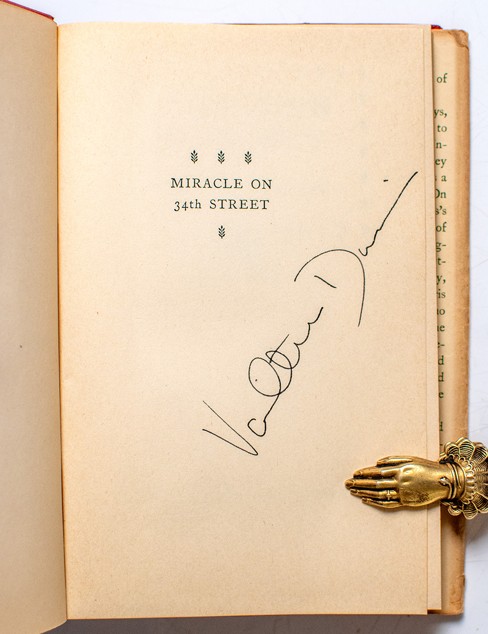 First edition of this modern Christmas classic. Octavo, original red cloth. Boldly signed by Valentine Davies on the half-title page. Fine in a very good first-issue dust jacket with "Double Your Enjoyment" on the rear panel. Housed in a custom half morocco clamshell box by the Harcourt Bindery. Exceptionally rare and desirable signed.