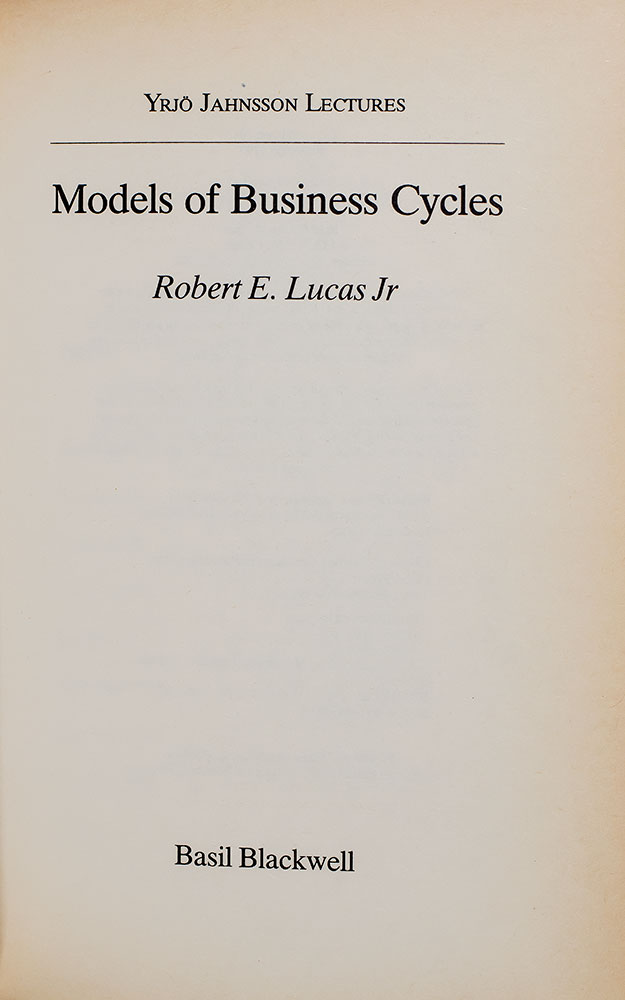 Robert E. Lucas' Models of Business Cycles; Inscribed by Him