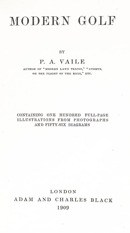 Mr. Vaile's purpose was a good one, '...to produce a book from which a person who has never handled a club caught such an idea of the game and the underlying principles that govern the flight and run of the ball that he may soon become a confident and good player'" (Murdoch). Murdoch 808; D&M 38170; D&J V1240.