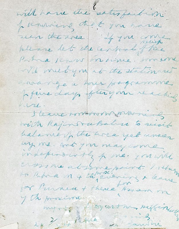 A historically significant autographed signed letter from Mohandas Gandhi, written at the height of the independence movement in India, in response to the devastation of the Nepal-Bihar earthquake, and requesting help from a British friend. The 8.0 magnitude earthquake which struck on January 15, 1934, was one of the worst in the history of Nepal and the northern Indian state of Bihar. Gandhi writes to Sam Higginbottom in response to an offer of aid, "Dear Friend: Your letter has given me great joy. I take you at your word. Come, see the afflicted area and tell us (1) how best and cheaply we can clean our choked wells, (2) how we can house the homeless, (3) how drain water-clogged areas, (4) how remove the sand which covers our fair fields. These are but samples of the work in front of us. Of course the gov't and the people are working in unison. But you know my regards for your expert knowledge. Even if you do not show us anything new, I personally will have the satisfaction of knowing that you have seen the area... I leave tomorrow morning with Rajendra Babu to visit balance of the area yet unseen by me. But you may come independently of me... I return to Patna on 4th prox. evening and leave for Purnea and thence for Assam on the 7th proximo... Very sincerely, M. Gandhi." The recipient of the letter Sam Higginbottom, was an Englishman who lived in Allahabad, India, where he founded the Allahabad Agricultural Institute. While in India, he developed close friendships with Gandhi and Jawaharlal Nehru. The letter is on both sides of a single sheet, with a portion of the original envelope, addressed in Gandhi's hand and with canceled stamp, affixed to the bottom of the letter. In very good condition. Housed in a custom folding case. An exceptional piece of history.
