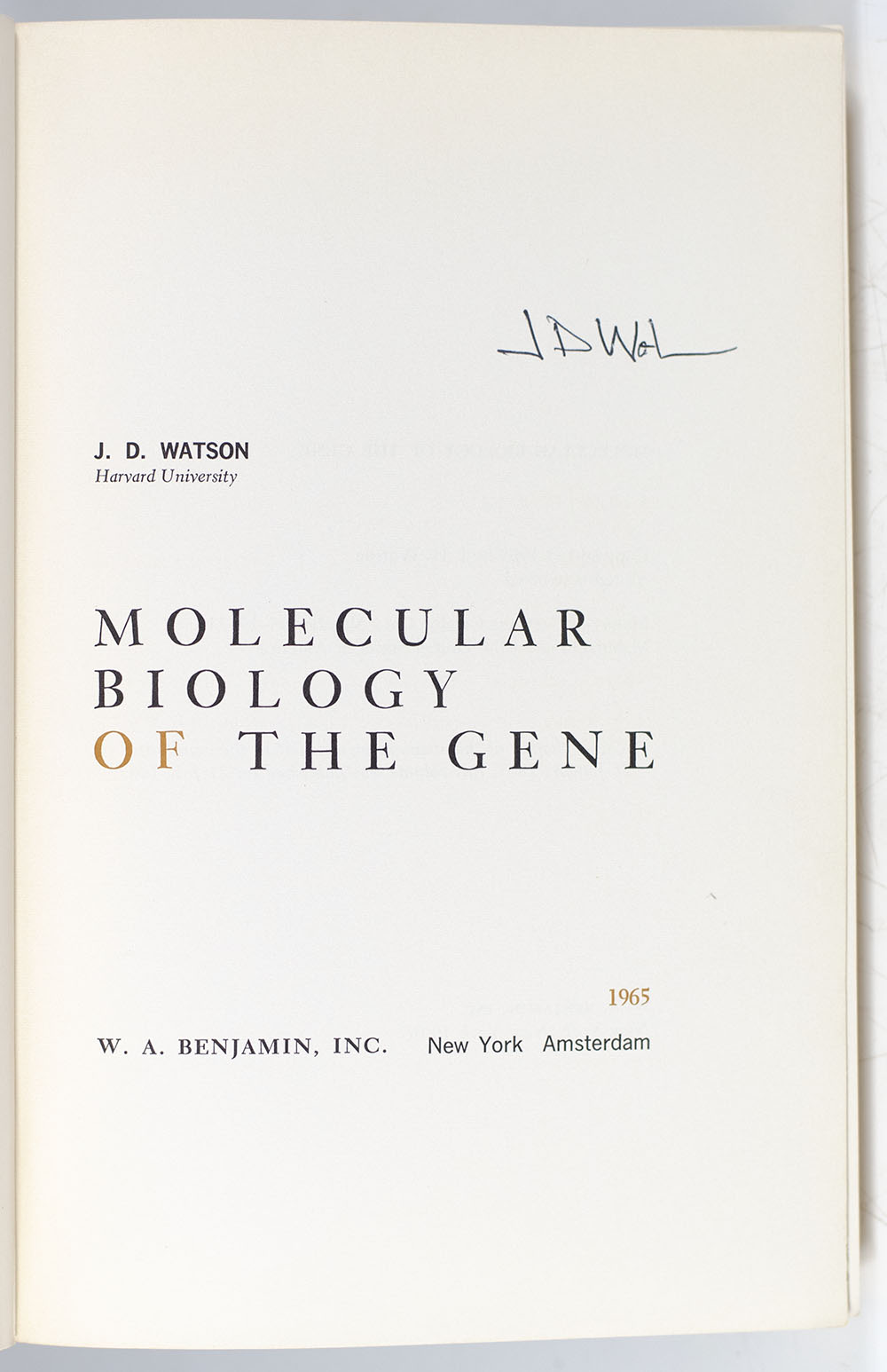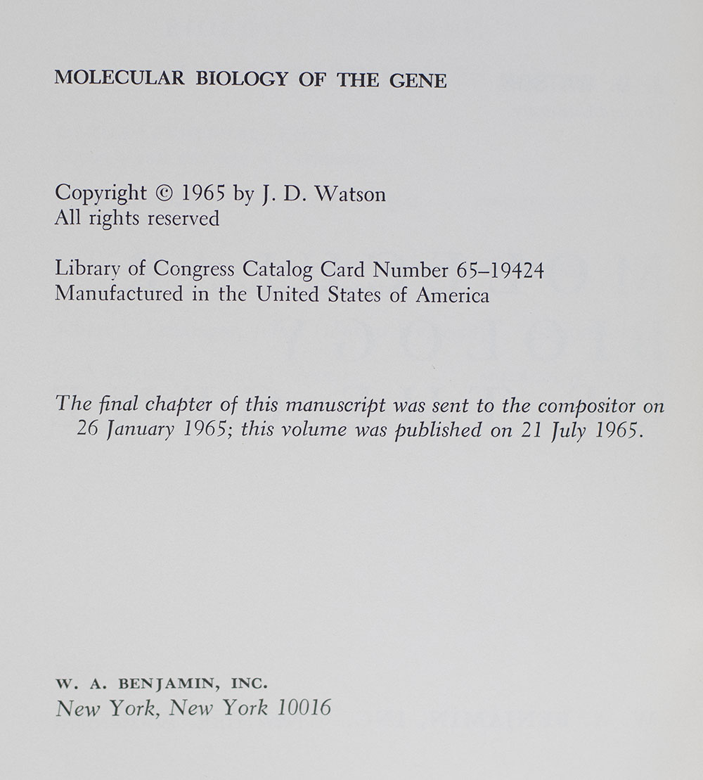 "It is easy to consider man unique among living organisms": First Edition of Watson's Molecular Biology of the Gene; Signed by Him