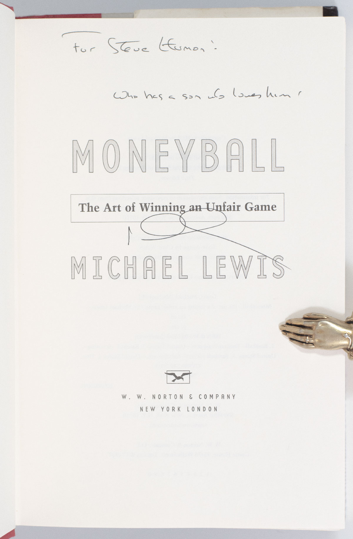 First edition of this work, basis for the 2011 film directed by Bennett Miller starring Brad Pitt and Jonah Hill. Octavo, original boards. Presentation copy, inscribed by the author on the title page, "For Steve Humon! Who has a son who love him, Michael Lewis." Near fine in a near fine dust jacket. Jacket design by And Partners, NYC.