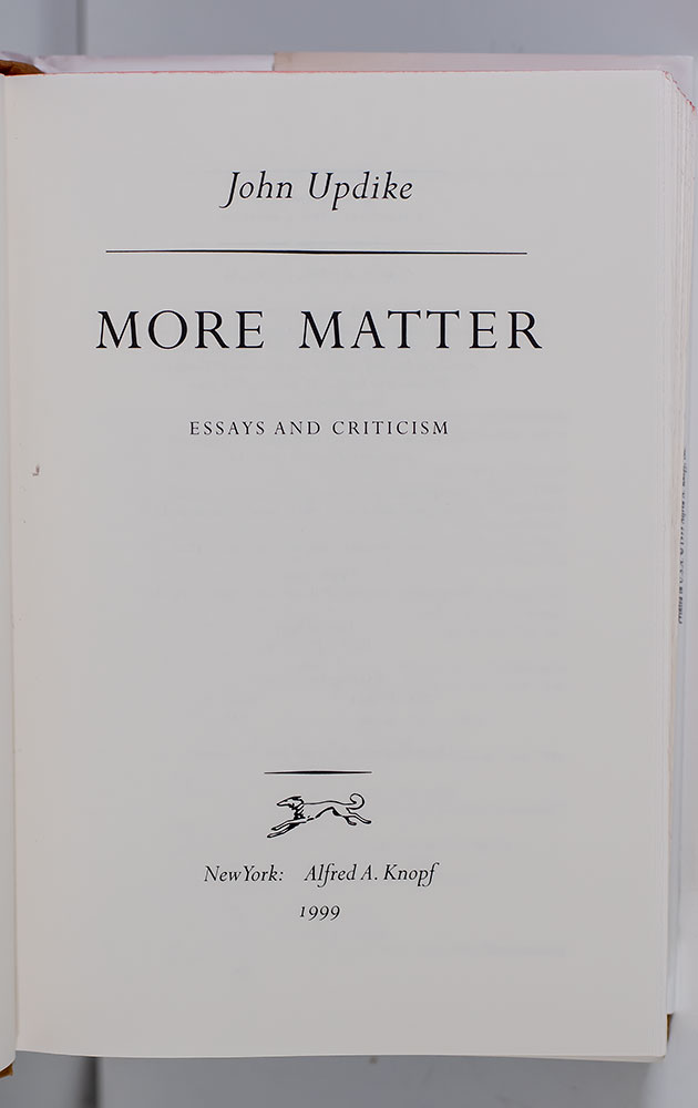 First Edition of More Matter; Inscribed by John Updike To His Friend and Golfing Partner With A Drawing Of Santa Claus