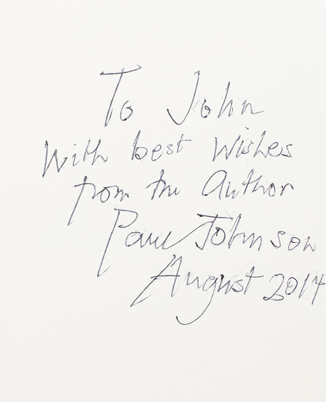 First edition of this work on Mozart by the award-winning author. Octavo, original boards. Presentation copy, inscribed by the author on the front free endpaper, "To John with best wishes from the Author Paul Johnson August 2014." Fine in a fine dust jacket. Jacket design by Jason Ramirez.