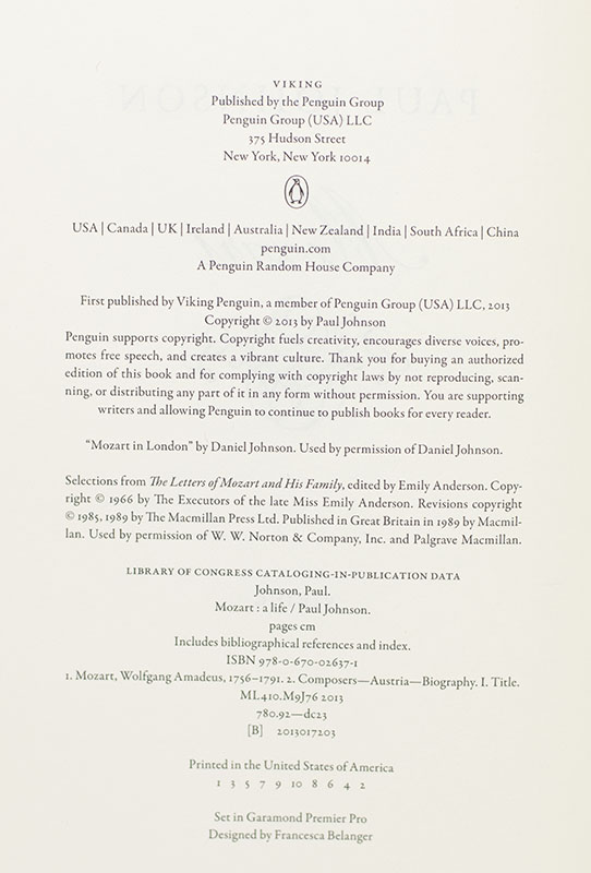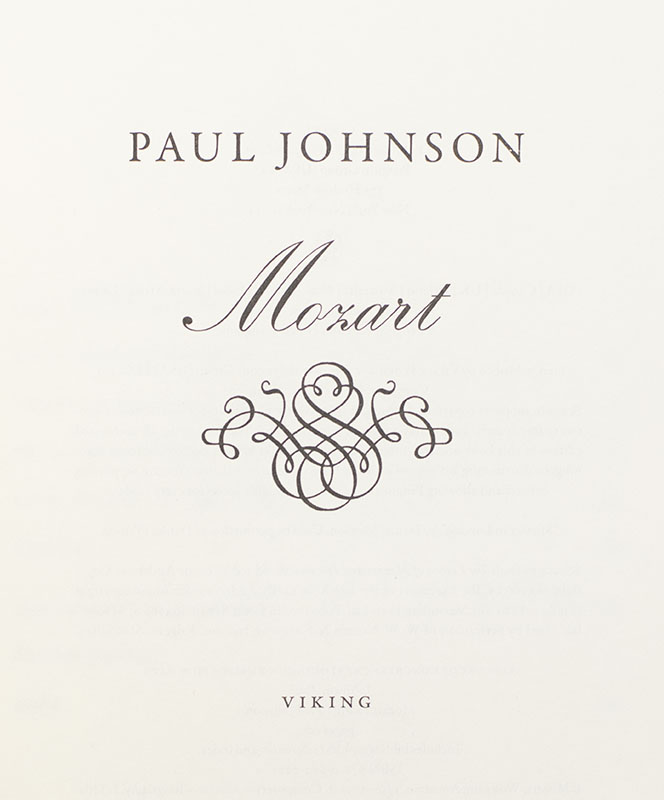 First Edition of Paul Johnson's Mozart: A Life; Inscribed by Him