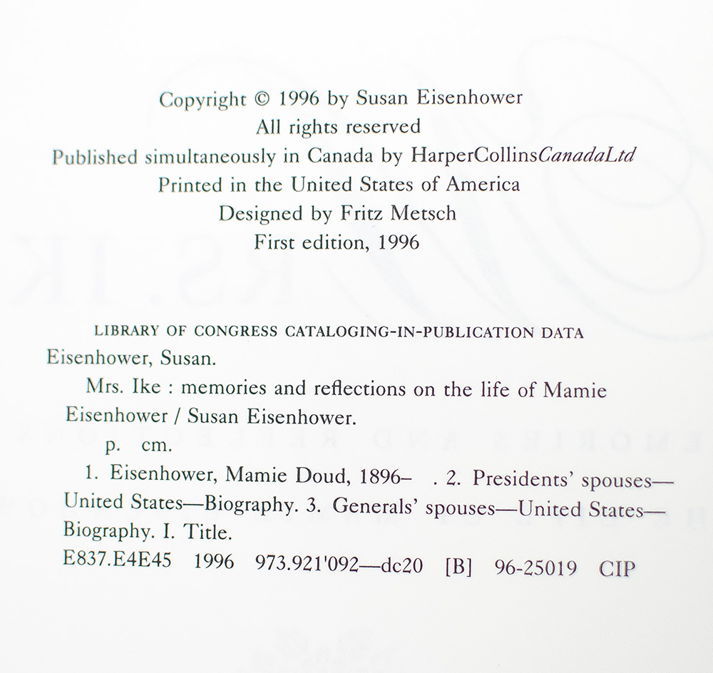 First edition of Mrs. Ike: Memories and Reflections on the Life of Mamie Eisenhower; Inscribed by Susan Eisenhower to Secretary Madeleine K. Albright