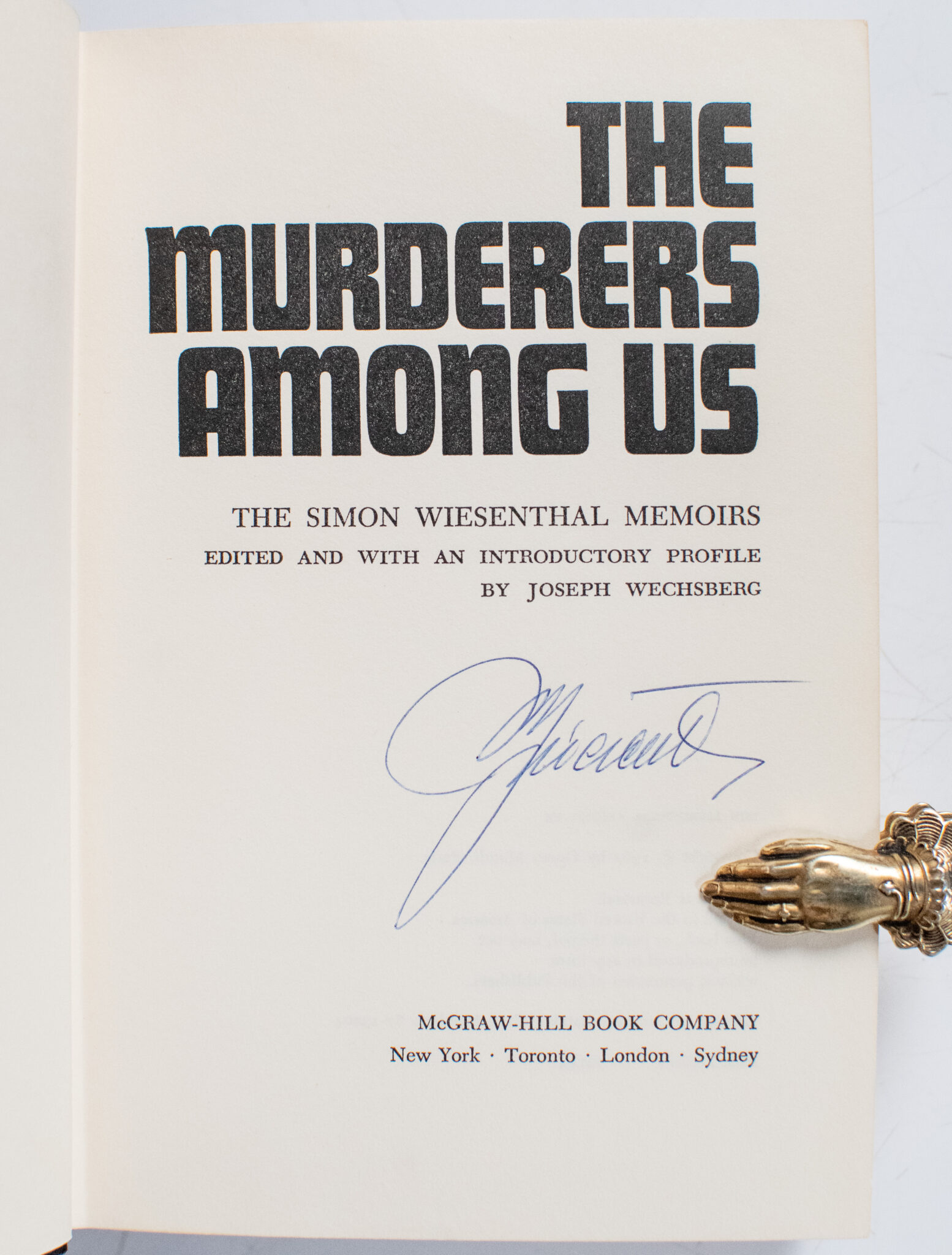 "For evil to flourish, it only requires good men to do nothing": First Edition of Simon Wiesenthal's Murderers Among Us; Signed by Him