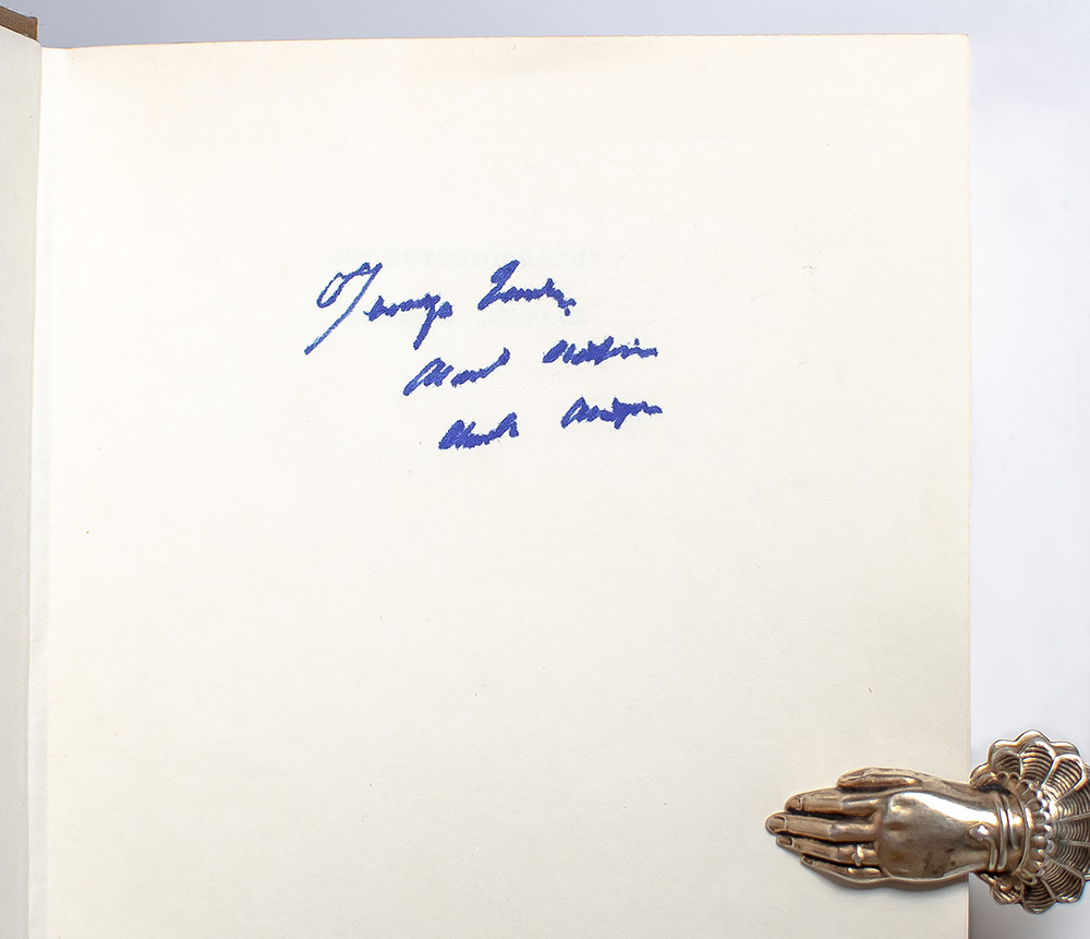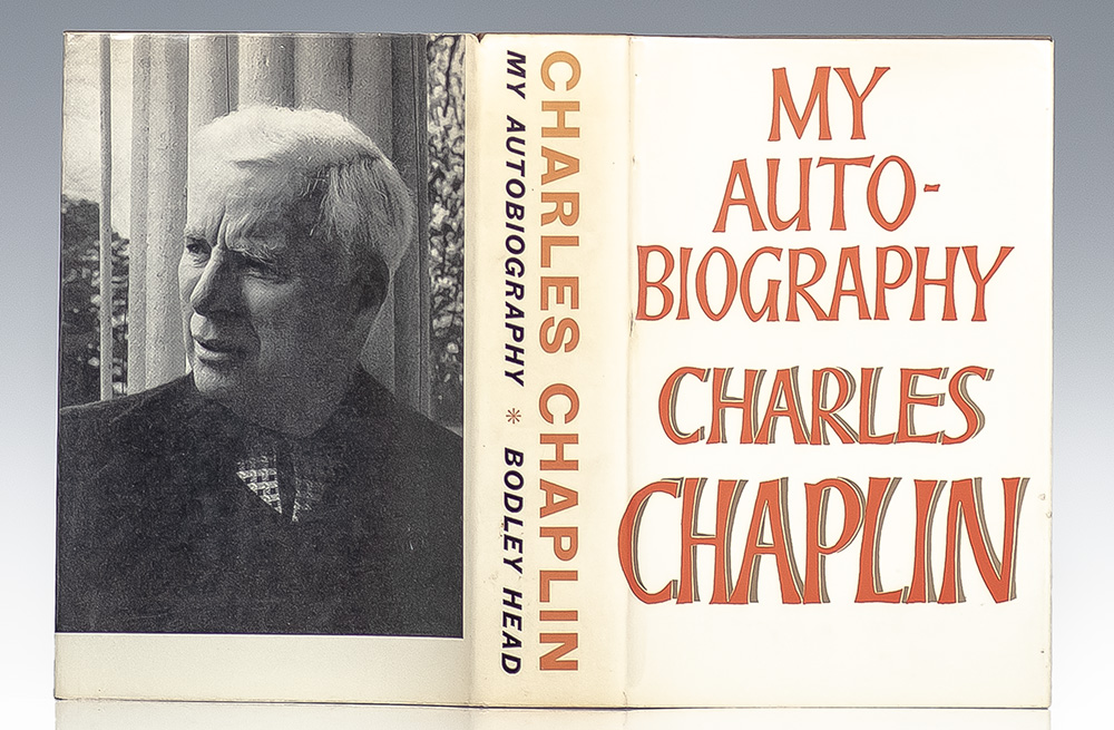 First edition, early printing of Charlie Chaplin's extraordinarily vivid autobiography. Octavo, original boards, illustrated with photographs. Presentation copy, inscribed by the author on the front free endpaper. With a letter of provenance laid in to Bob Israel describing the legibility of Chaplin's inscription and gifting five color photographs depicting Chaplin with Oona O'Neil Chaplin and others. Fine in a very good price-clipped dust jacket. Uncommon signed and inscribed.