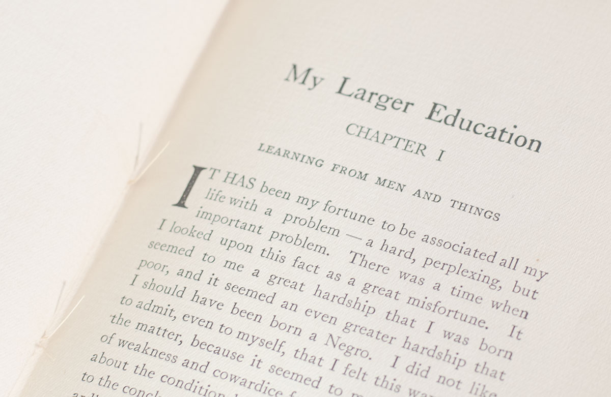 Born in Virginia in 1856, Booker T. Washington was of the last generation born into slavery. After emancipation, Washington attended college in Virginia, and gained fame as a result of his 1895 speech about the importance of educating African Americans and his belief that African Americans were capable of great feats through education. Washington s contribution to educational equality was made greater by his influence in the social circles of millionaires and self-starters, and he was the first African American invited to the White House by President Theodore Roosevelt. Washington’s biography Up From Slavery is listed among the most widely read autobiographies. It was originally published as a serial in the Outlook Magazine… and was ultimately published in more than 12 languages” (Blockson 51). "It remains one of the most important works on such an influential African-American leader" (Delia Crutchfield Cook).