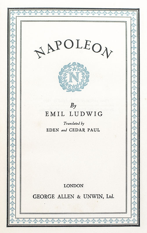 [NAPOLEON BONAPARTE]. EMIL LUDWIG. TRANSLATED BY EDEN AND CEDAR PAUL,.