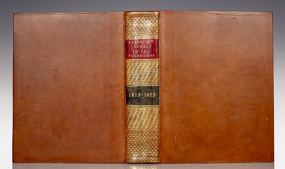 First editions of the official narratives of Franklin's first and second voyages to the Polar Sea. Quarto, two volumes uniformly bound in full period-style speckled calf with morocco gilt-lettered labels and elaborate gilt tooling to the spine, gilt turn-ins. First Narrative: First edition, first issue with the Errata slip, illustrated with 30 plates 11 of which are finely hand colored and 4 folding maps. Second Expedition: First edition illustrated with 31 plates and 6 folding maps, 1 with hand color outline. Sabin 25624 and 26228. Arctic Bibliography 5194 and 5198. In near fine condition. A superb set of this classic of travel literature in a stunning binding.