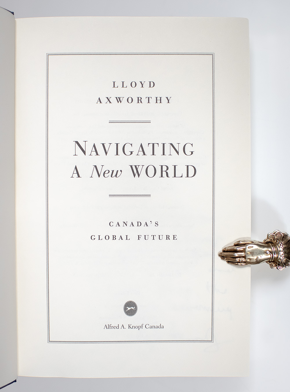 First edition of Navigating A New World: Canada's Global Future; Inscribed by Lloyd Axworthy to Secretary Madeleine K. Albright