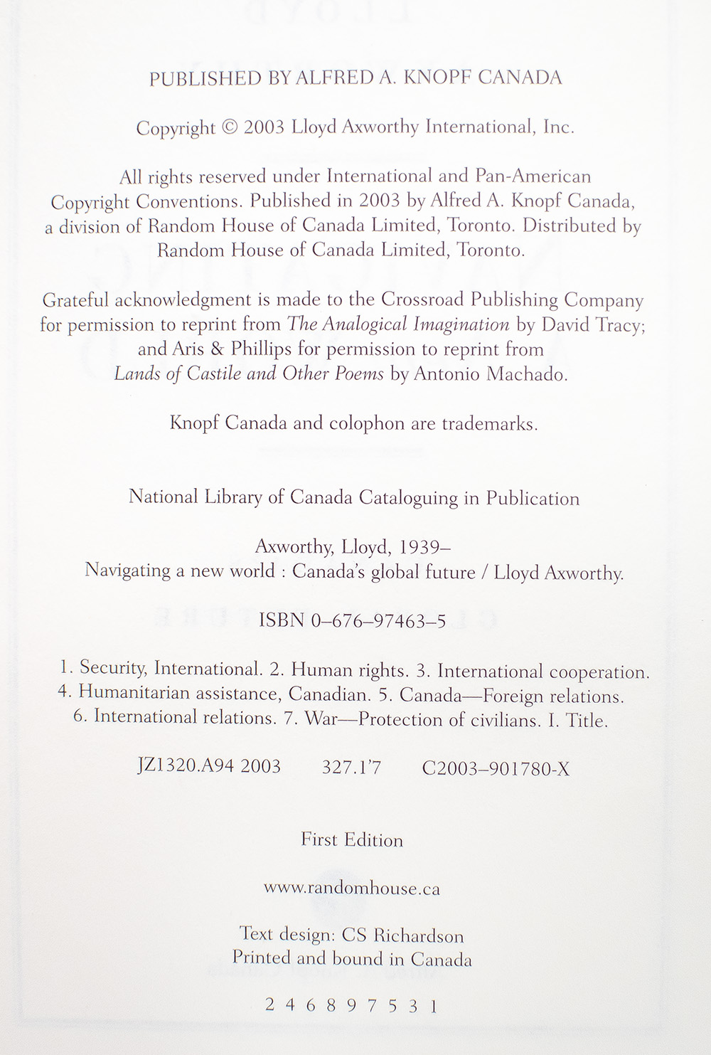 Canada: Alfred A. Knopf Canada, 2003.