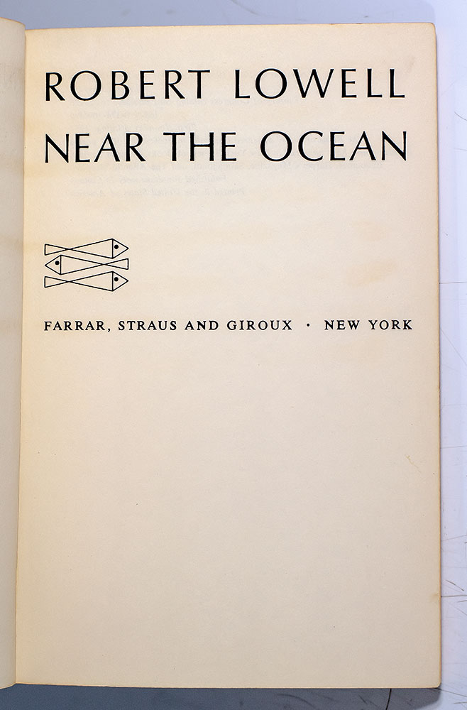 "We hear the ocean. Older seas and deserts give asylum, peace to each abortion and mistake. Lost in the Near Eastern dreck, the tyrant and tyrannicide lie like the bridegroom and the bride": First edition of Robert Lowell's Near The Ocean; inscribed by him