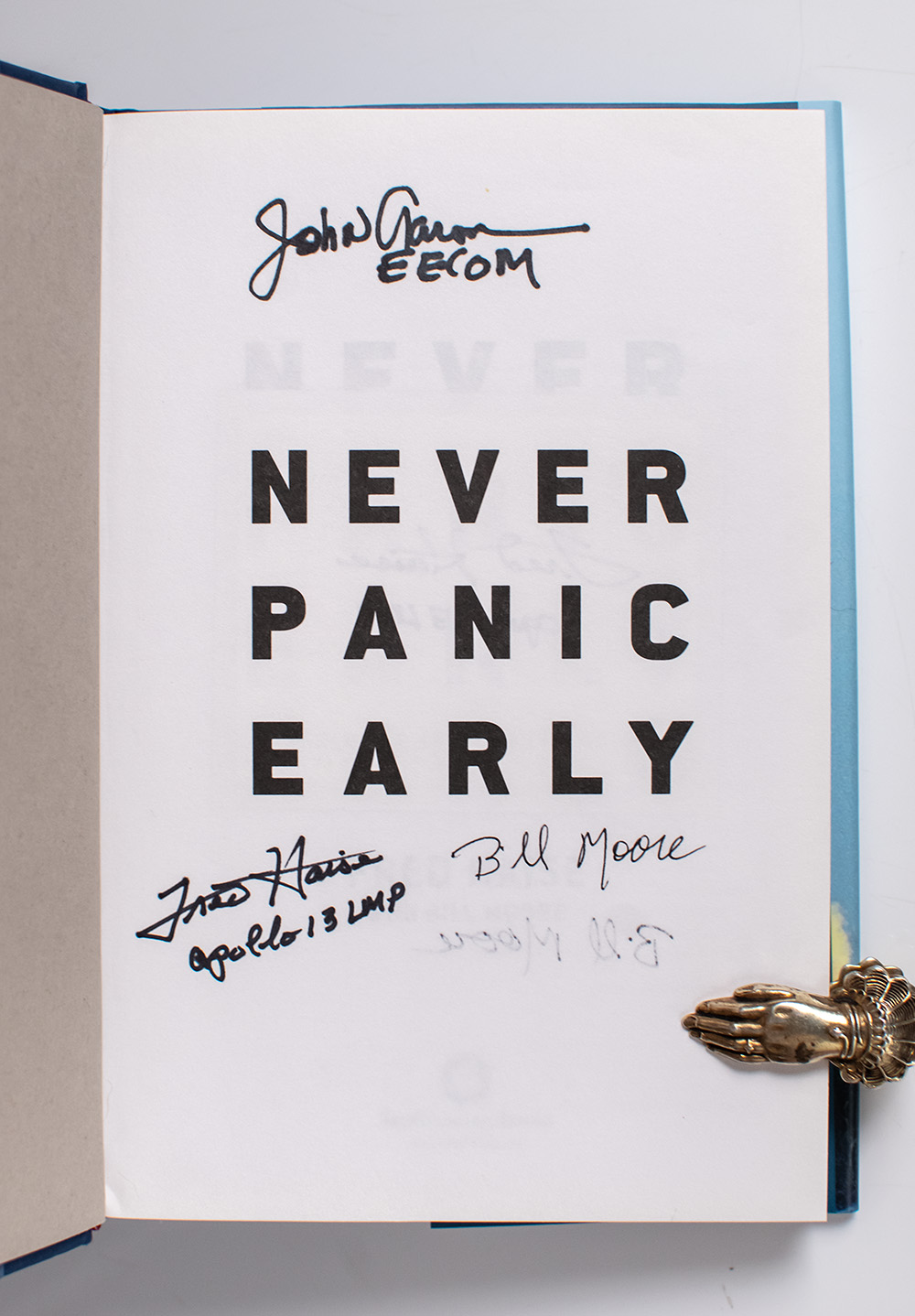 Never Panic Early; Signed Twice By Astronaut Fred Haise; Twice by Bill Moore and by John Aaron