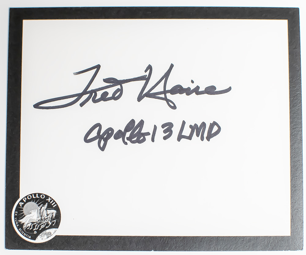 First edition, early printing of the extraordinary autobiography of astronaut Fred Haise, one of only 24 men to fly to the moon. Octavo, original half cloth. Signed by the author on the front free endpaper on a Apollo XIII bookplate, "Fred Haise Apollo 13 LMP." Fine in a fine dust jacket. Jacket design by Gary Tooth. Foreword by Gene Kranz.