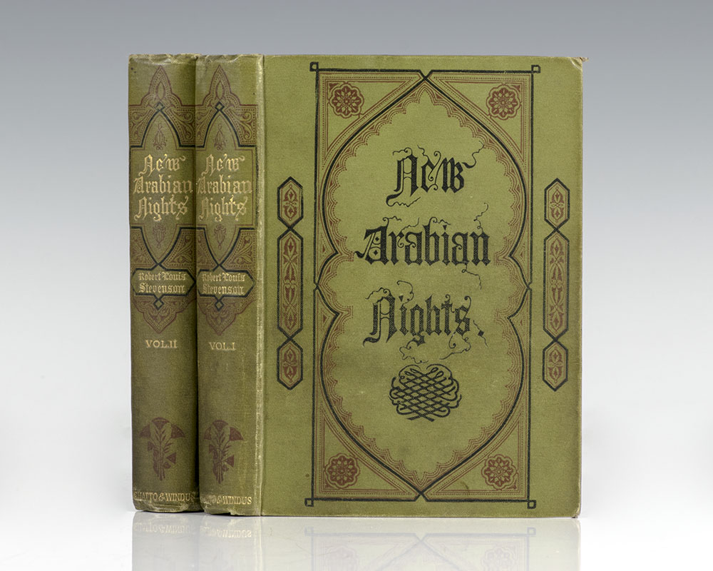First edition, first printing of the short story collection containing Stevenson's first published fiction, considered by many to be his best work with page 155 of second volume misnumbered '55', and 'Maletroit' misspelt 'Maledroit' on page 179. Octavos, two volumes, original green cloth with gilt titles to the spine and arabesque decorations to the front panels, with the 32-page publisher's catalogue at rear of second volume, dated May 1882. In near fine condition. From the library of bibliophile and yachtsman Henry C. Taylor with his bookplate to the pastedown of each volume. Housed in a custom half morocco clamshell and chemise case. An exceptional example.