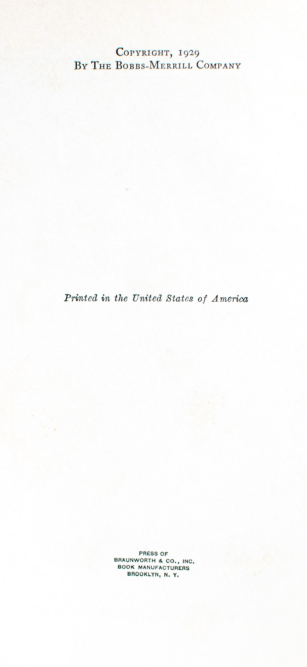 Indianapolis: The Bobbs-Merrill Company, 1929.