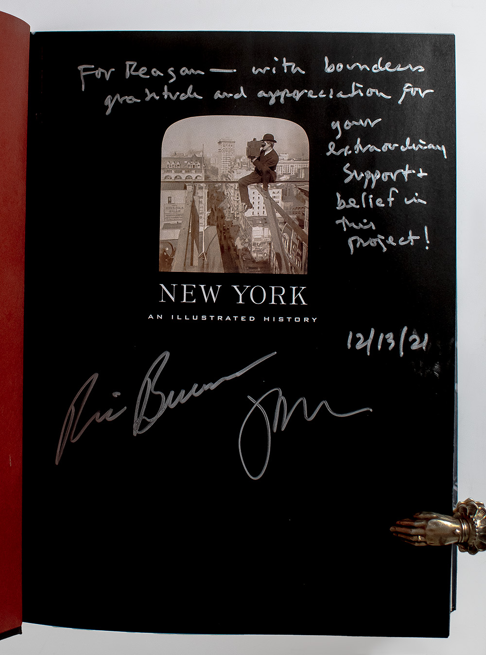 The expanded edition of this landmark illustrated history of the city that never sleeps. Quarto, original cloth, heavily illustrated with more than 600 images in color and black and white. Presentation copy, boldly inscribed by the authors on the half-title page, "For Reagan - with boundless gratitude and appreciation for you extraordinary support & belief in this project! 12/13/21 Ric Burns, J Sanders." Fine in a fine dust jacket. Jacket design by Jenny Carrow.