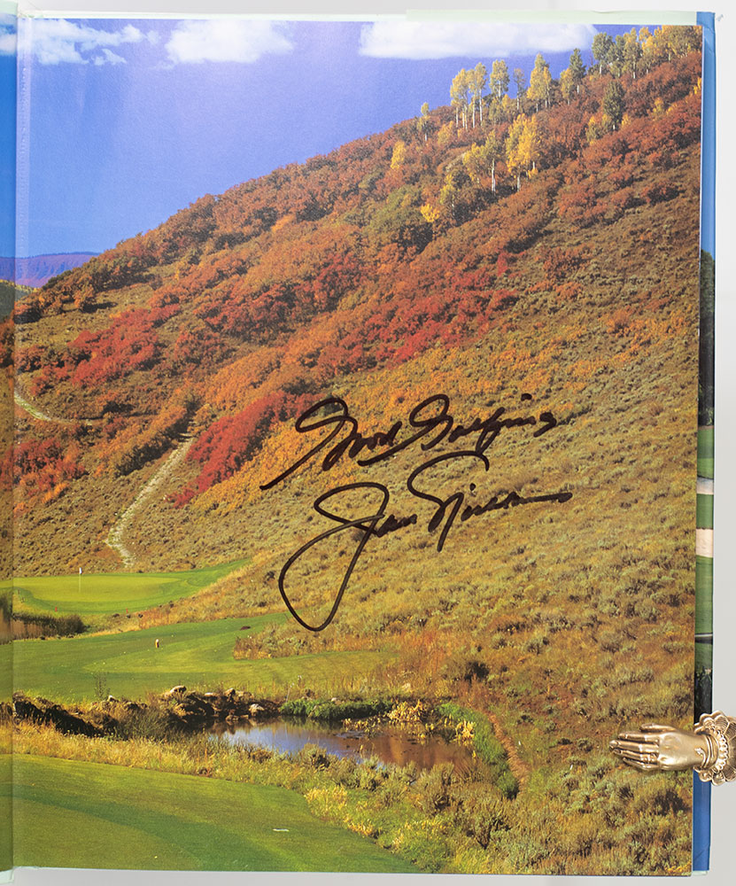 First edition of this wonderfully illustrated work on courses designed by golf legend Jack Nicklaus. Quarto, original boards, 164 illustrations, including 152 plates in full color, pictorial endpapers. Boldly signed by the author on the front free endpaper, "Good Golfing Jack Nicklaus." Fine in a fine dust jacket. Foreword by Pete Dye.