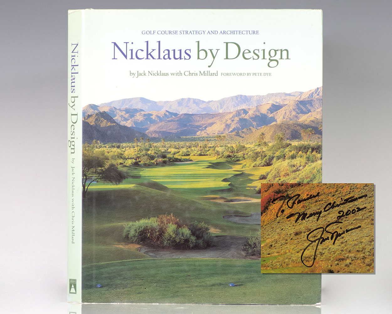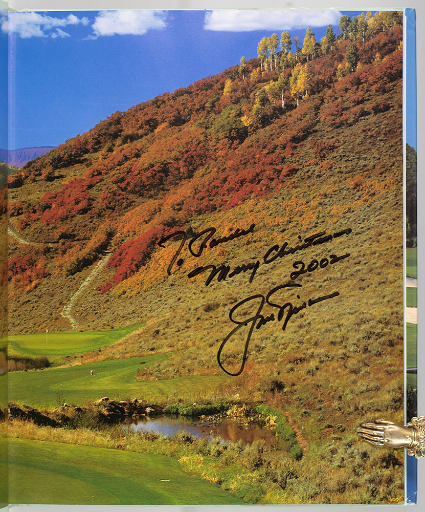 First edition of this wonderfully illustrated work on courses designed by golf legend Jack Nicklaus. Quarto, original boards, 164 illustrations, including 152 plates in full color, pictorial endpapers. Presentation copy, inscribed and dated by the author on the front free endpaper, "For Randall Merry Christmas 2002 Jack Nicklaus." Fine in a fine dust jacket. Foreword by Pete Dye.