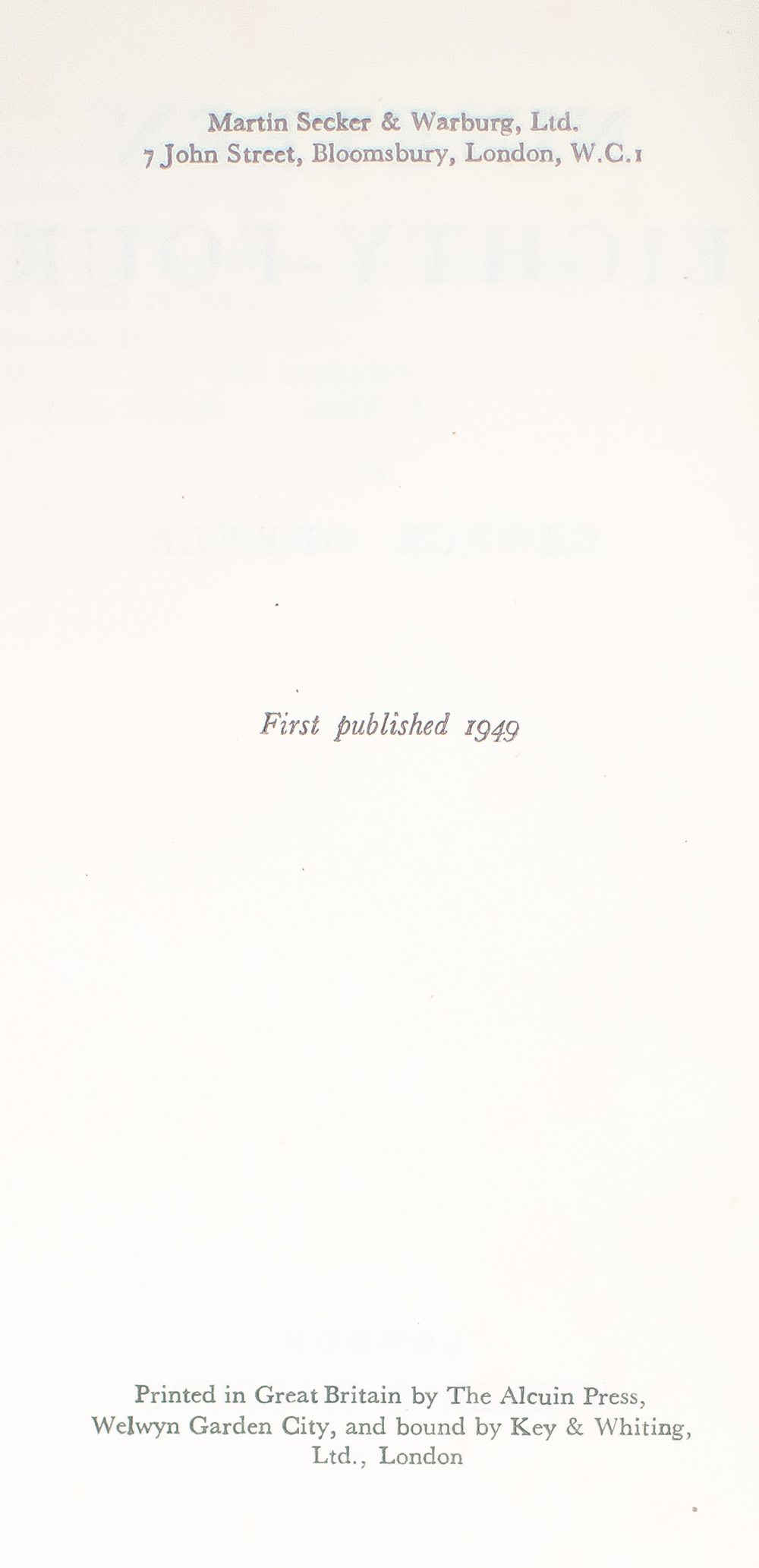 “Who controls the past controls the future. Who controls the present controls the past": First Edition of George Orwell's Classic Nineteen Eighty-Four