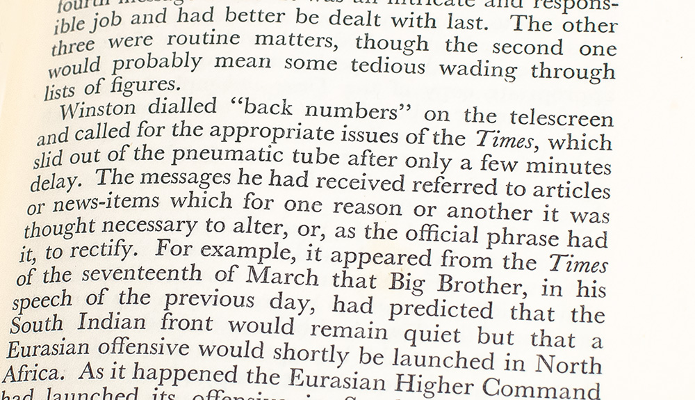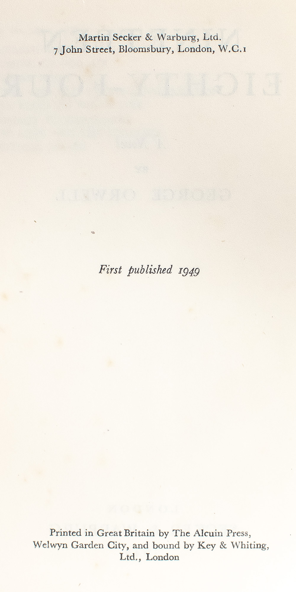 “Who controls the past controls the future. Who controls the present controls the past": First Edition of George Orwell's Classic Nineteen Eighty-Four