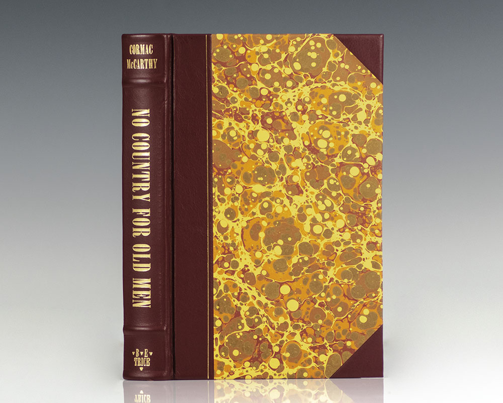 Signed limited first edition of this “harrowing, propulsive drama… about a stone-cold killer, a small-town sheriff, and an average Joe” (New York Times), one of only 75 copies. Octavo, bound in three quarters leather over marbled boards, gilt titles to the spine. Signed by Cormac McCarthy. Additionally signed twice with a note by the legendary dust jacket designer Chip Kidd below McCarthy's signature which reads, "The dust jacket is meant to represent the killer Chigurh, but in reality is a stock shot of a guy out jogging at sunrise- Chip Kidd Chip Kidd." Fine in a fine slipcase. A unique example explaining the iconic dust jacket design by Chip Kidd on the trade edition of this volume.